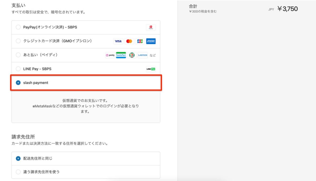 ■ 「Shopify x Slash module」決済方法